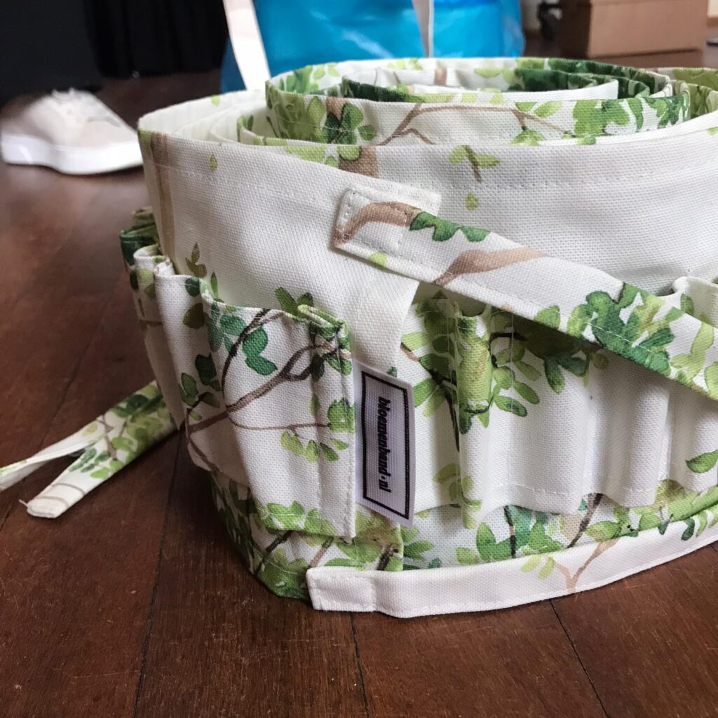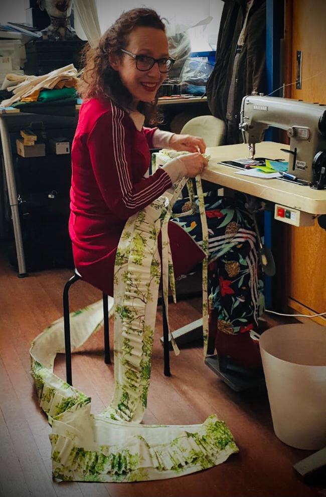 Gezellig kletsend met een kopje thee heb ik gewacht terwijl Jantine nog even achter de naaimachine plaats nam en het indrukwekkende verhaal over het ontstaan van de bloemenband vertelde.