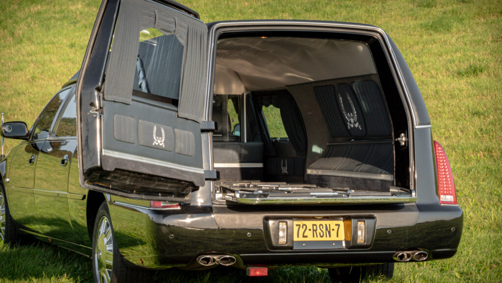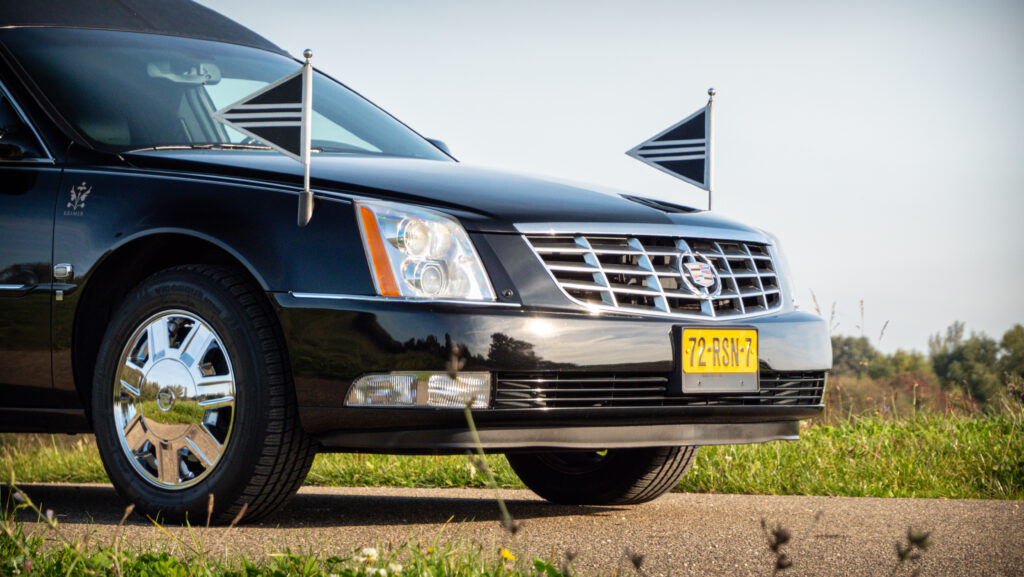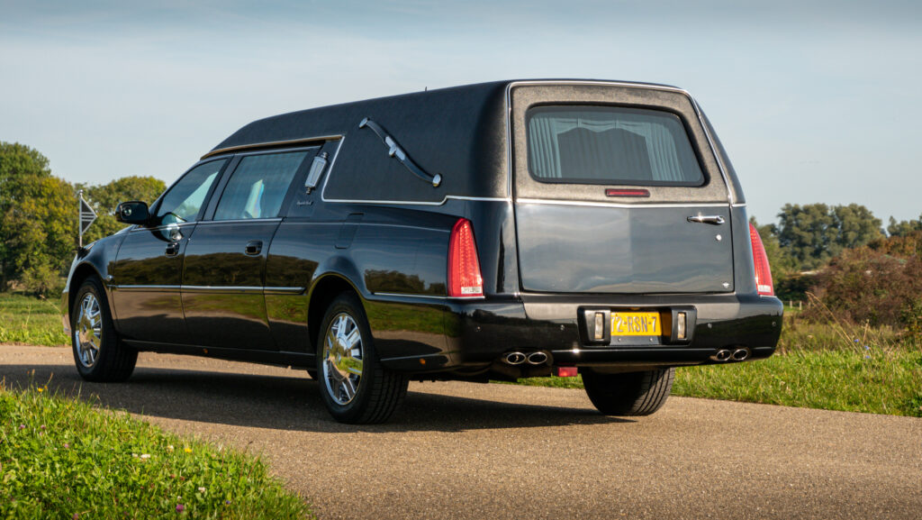 Deze statige Cadillac DTS rouwauto straalt elegantie en ingetogen kracht uit. Met zijn glanzende zwarte carrosserie en klassieke lijnen biedt deze rouwauto een waardige en stijlvolle laatste reis.